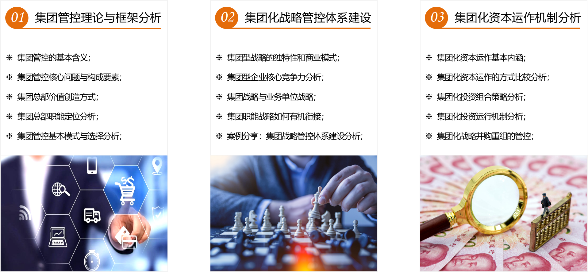 集团管控董事长赋能计划课程师资阵容强大,汇聚集团管控方向资深专家教授,其中包括北大、清华、人大等百年名校的商学名家。他们是顶级企业的护航者,他们是集团企业商界领袖的参谋长,他们视野开阔、见解深邃、洞悉经济与企业发展规律,具备丰富的实战经验,能够将世界最前沿的管理理论与中国管理实践相结合。以下为拟邀请部分师资展示,排名不分先后!